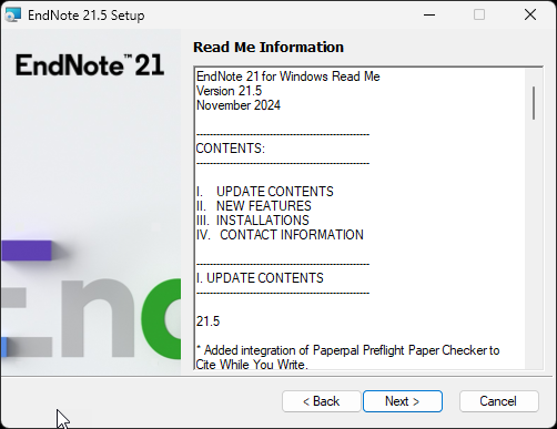 Click Next on the Read Me screen